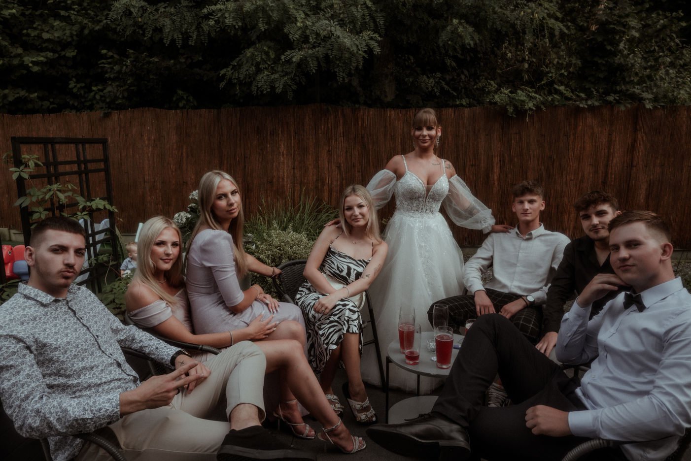 Chwile po zachodzie słońca wykonaliśmy z parą młodą krótką sesję w ogrodzie sali. Kolory na niebie były cudowne i tworzyły wyjątkowy klimat, który ja uwielbiam na zdjęciach.